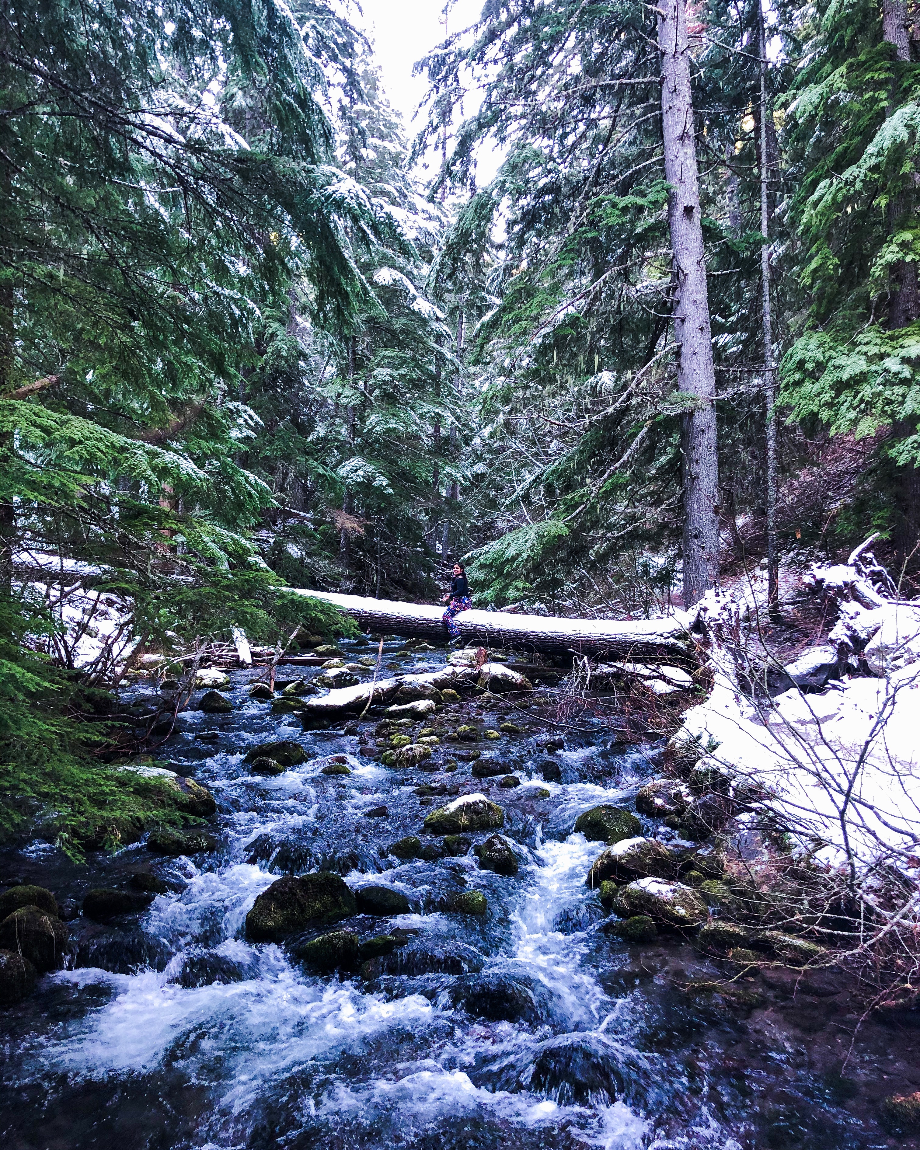 The hike weaves and switches between rocky to dirt to some muddy spots and goes by gorgeous little waterfalls and follows the river pretty much the entire time. In the winter it just looks like a snowy path following a river (it’s beautiful though the entire time, and if you go around November you get the magical snow covered branches like it’s a winter wonderland that I posted above).