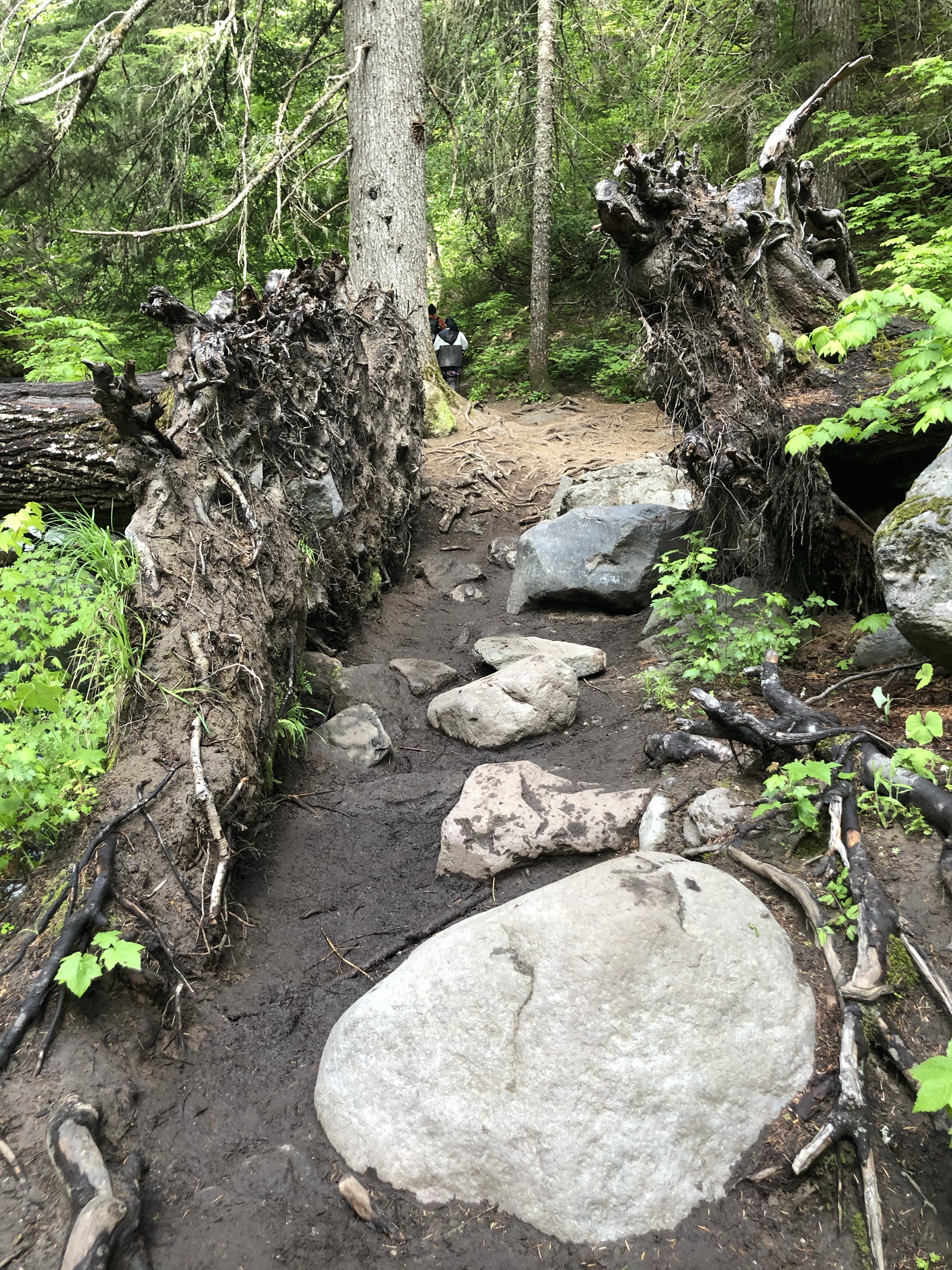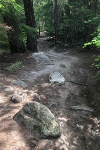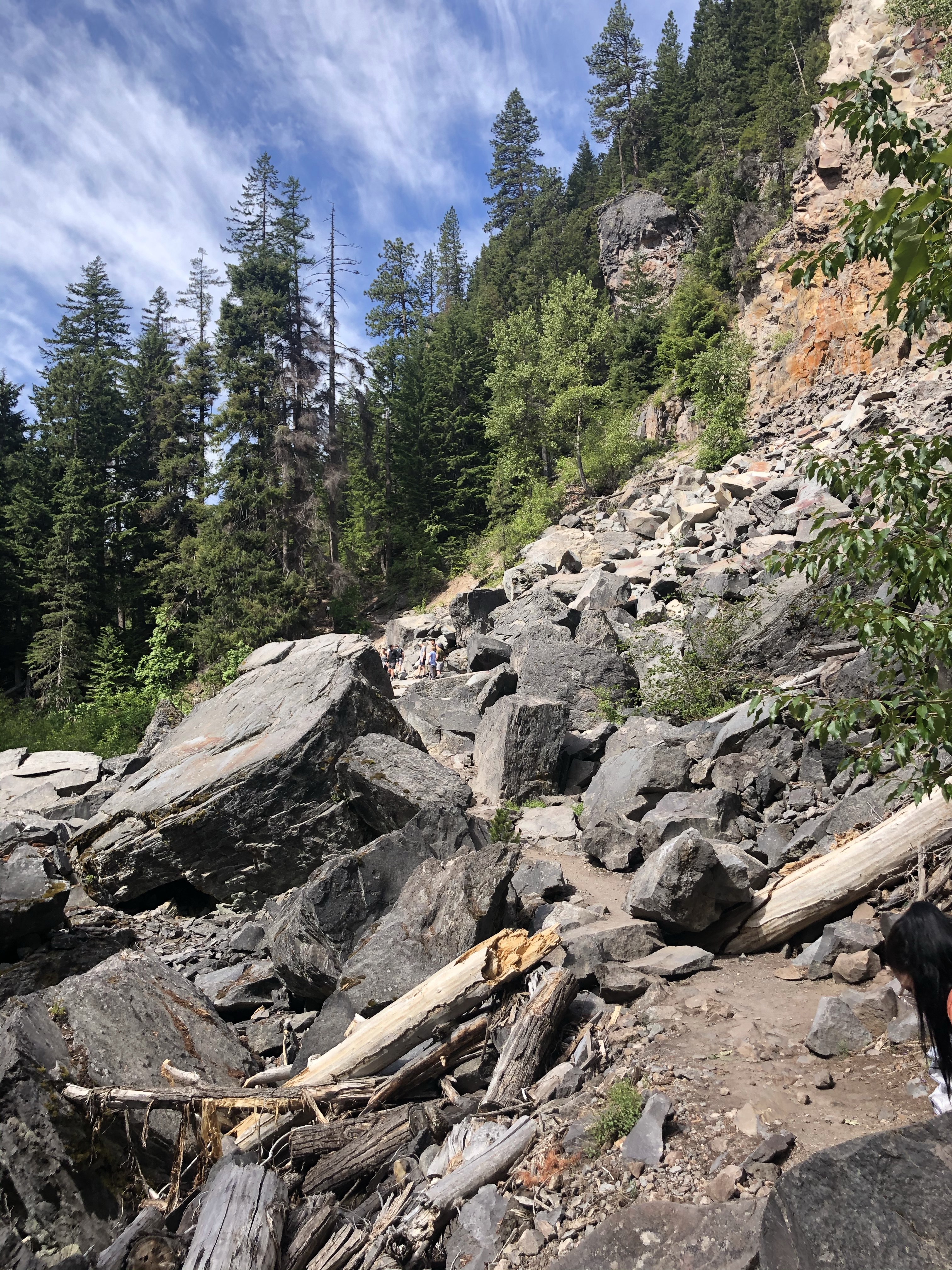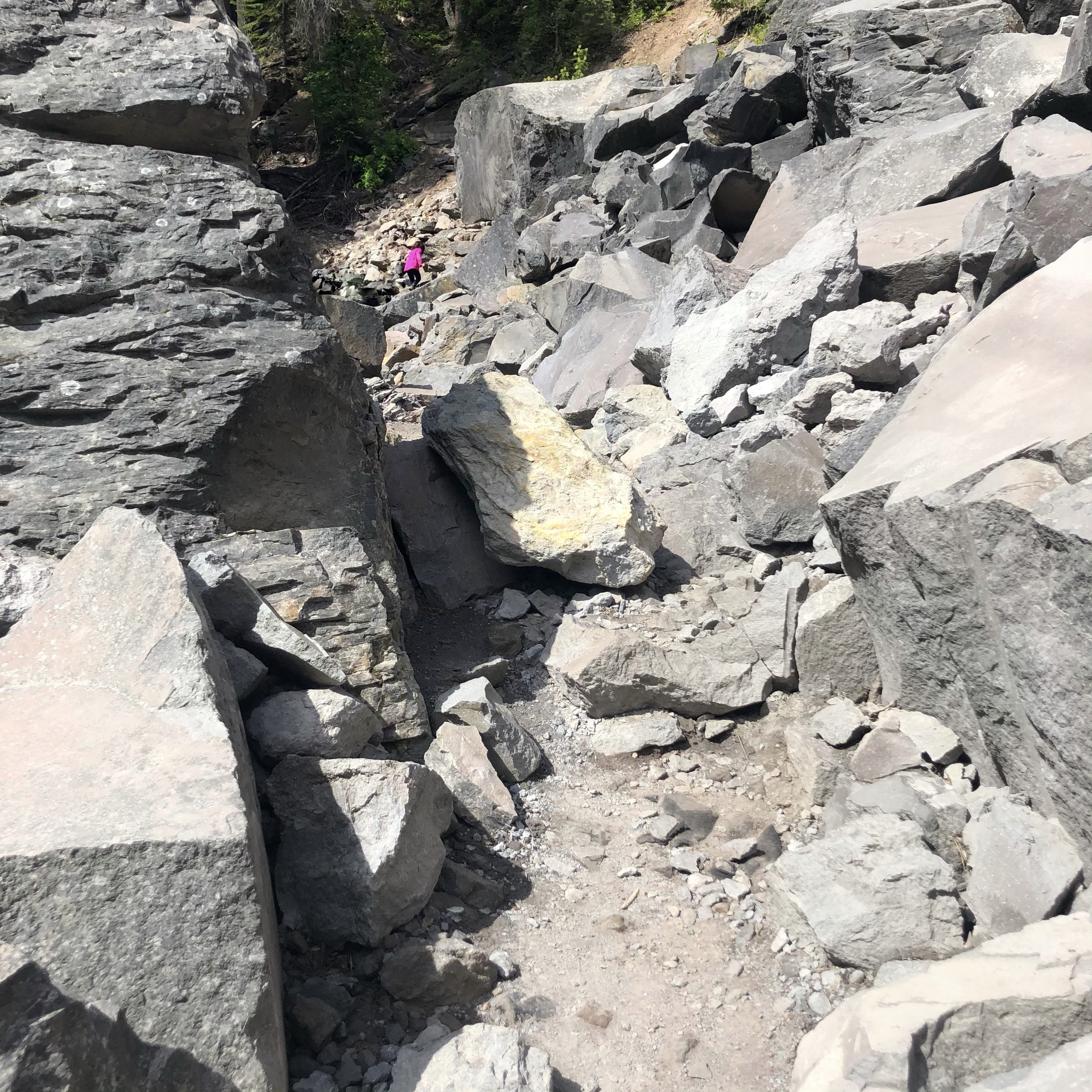 Then it starts to go uphill again until you hit my daughter’s favorite part: the big boulders!!! This part looks really scary at first, but there’s actually a decent trail through it. My mom is insane (with her knee issues) and on the way down decided to try and boulder over it instead of following the trail…. Needless to say I was cautiously following behind her and rolling my eyes.