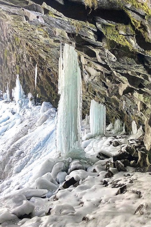 The main difference between summer and winter? Ice and snow. In the summer the trail is easy to follow and is littered with rocks from size of gravel to giant boulders. In winter everything is covered in a blanket of snow so the trail seems a lot flatter but sometimes it’s really deep snow – be careful where you step, especially in the boulder field area. There are a few areas where you’re going uphill on an incline and when it’s icy it’s like a slide. I’ve seen people sliding on their butts because they were wearing just sneakers (I’ve even seen sandals). You can probably make it to the waterfall just fine, but the downhill areas on the way out gets slick with the ice. I suggest strongly that you wear crampons, but if you don’t then at least carry them so you have the option.