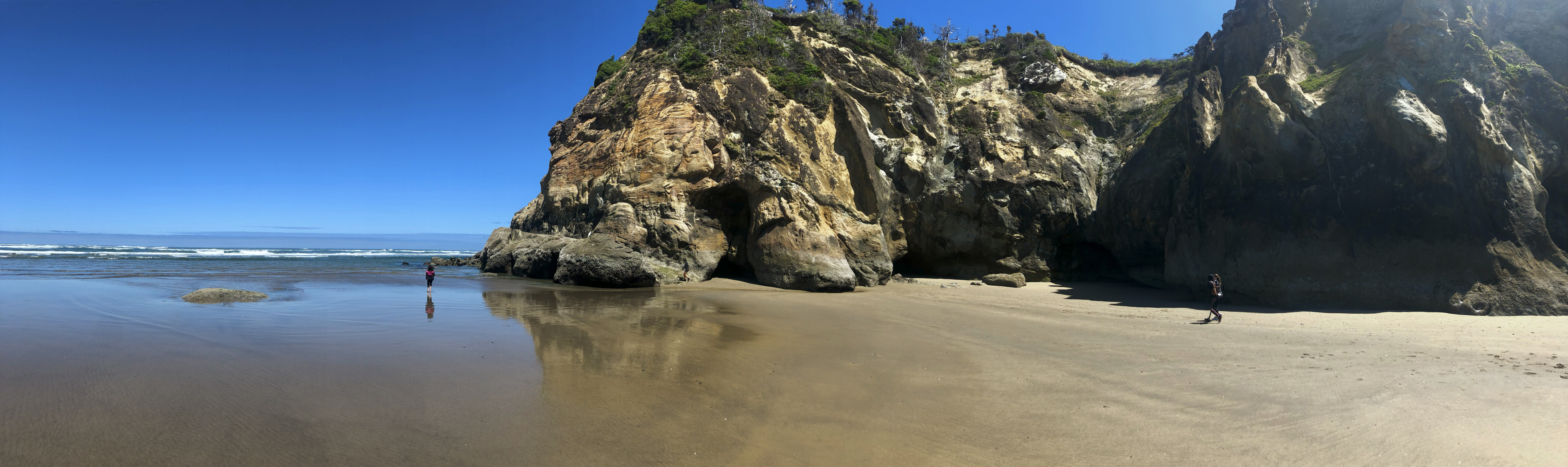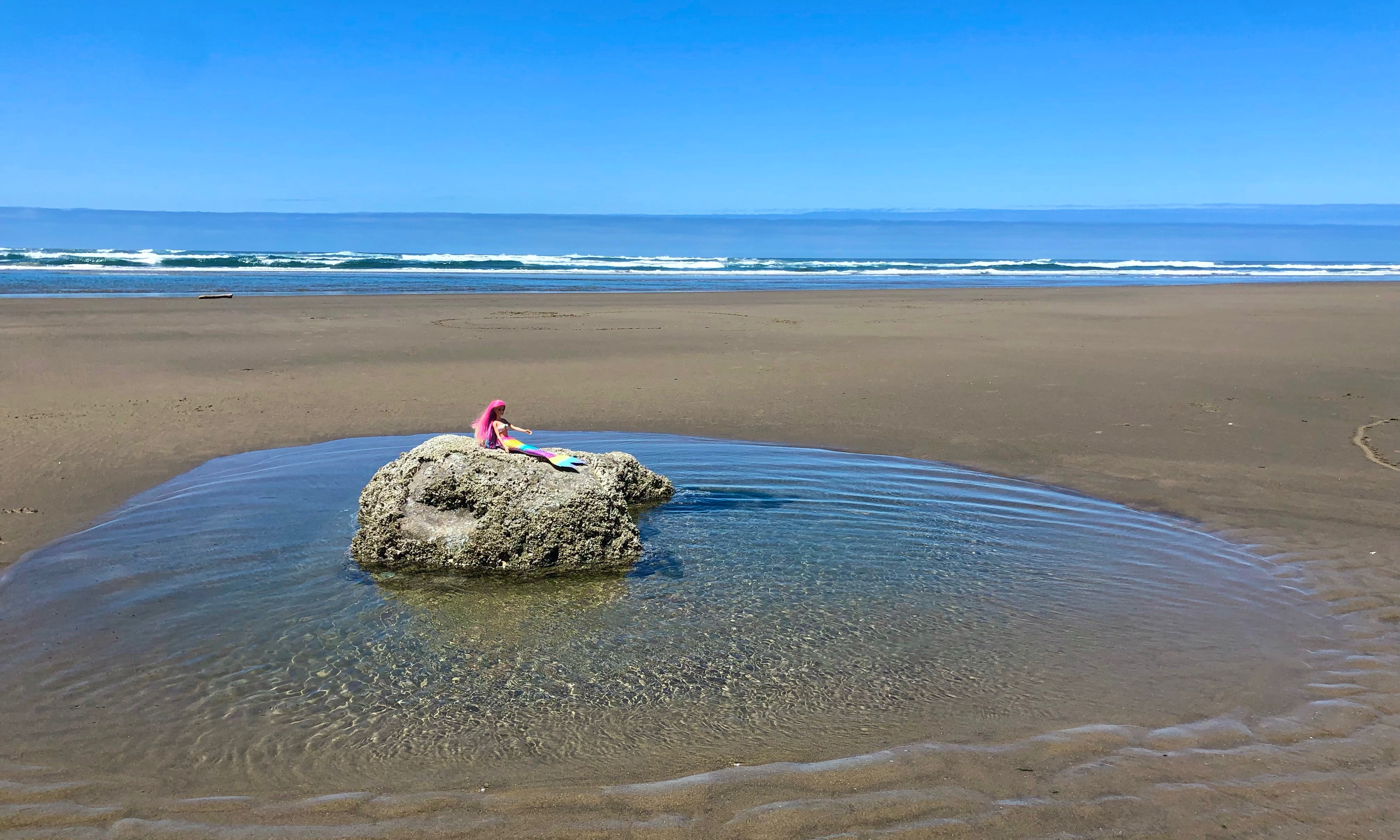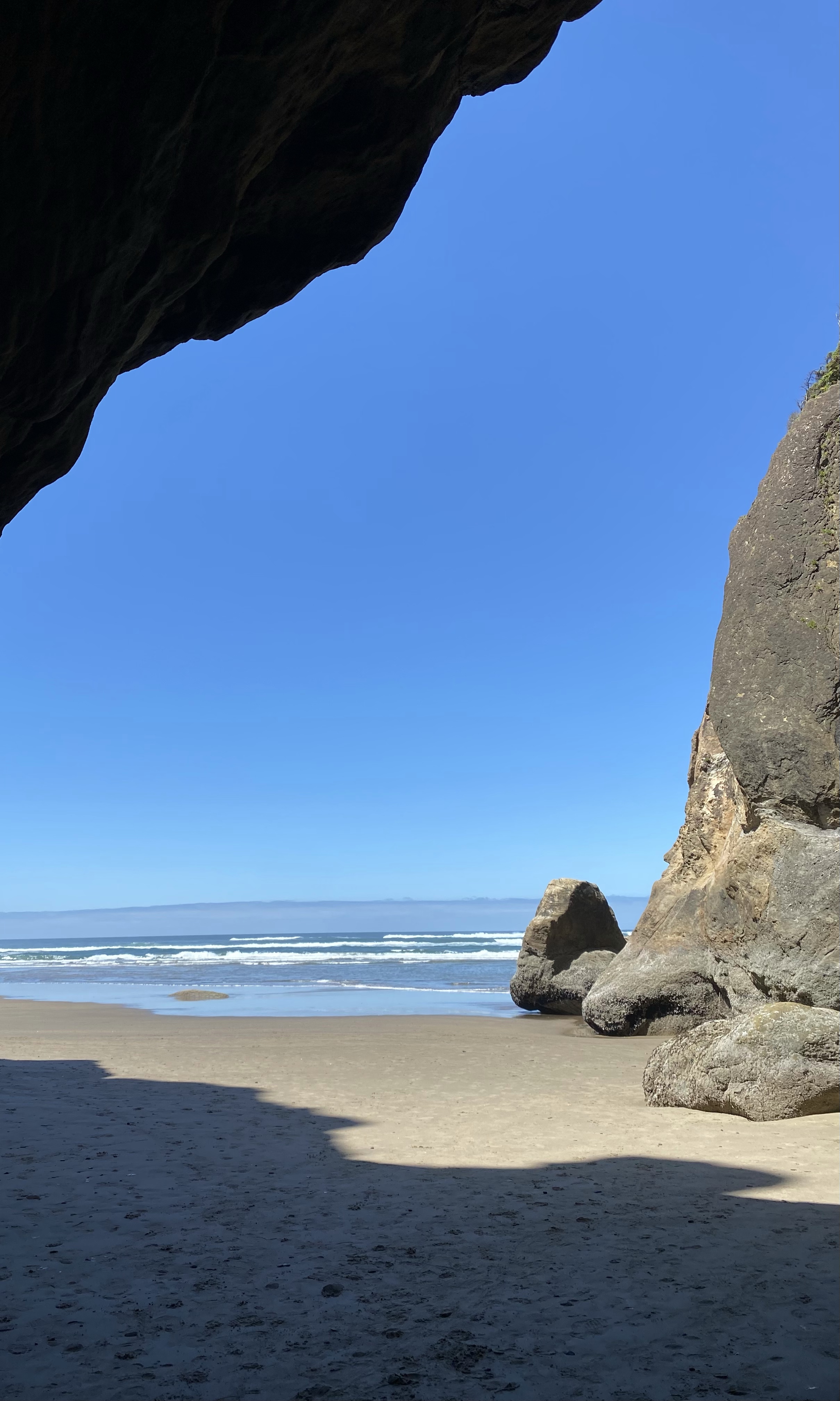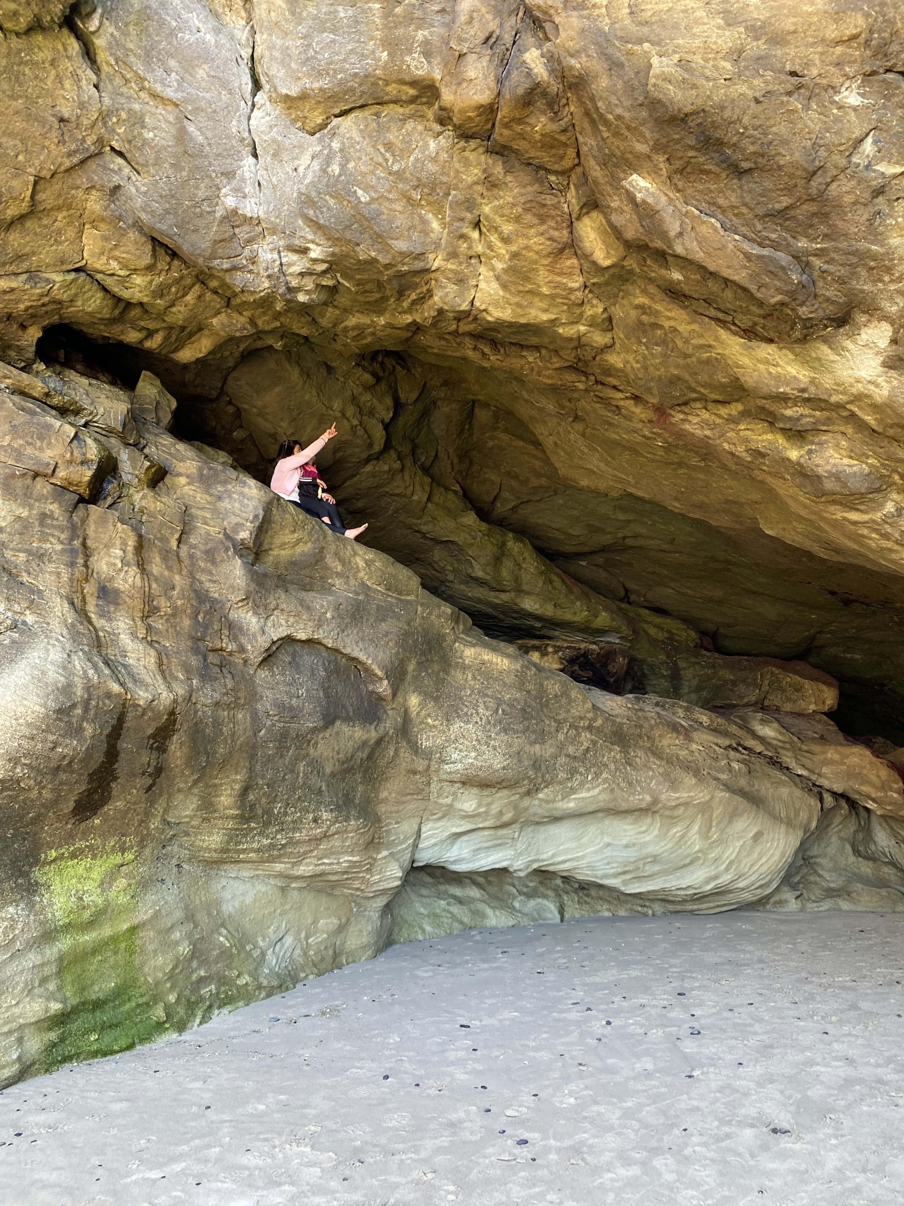 There are more caves, tide pools, a waterfall and freshwater creek to play in, a forestry area above the waterfall you can explore (hello mini hike!), and tons of sand to play in. You can walk for miles if you want, just BE VERY MINDFUL OF THE TIDE SCHEDULE because you could get trapped and then you’d either have to venture through the trees towards the main road or wait until it goes back out again… assuming you aren’t in a spot the tide would reach.