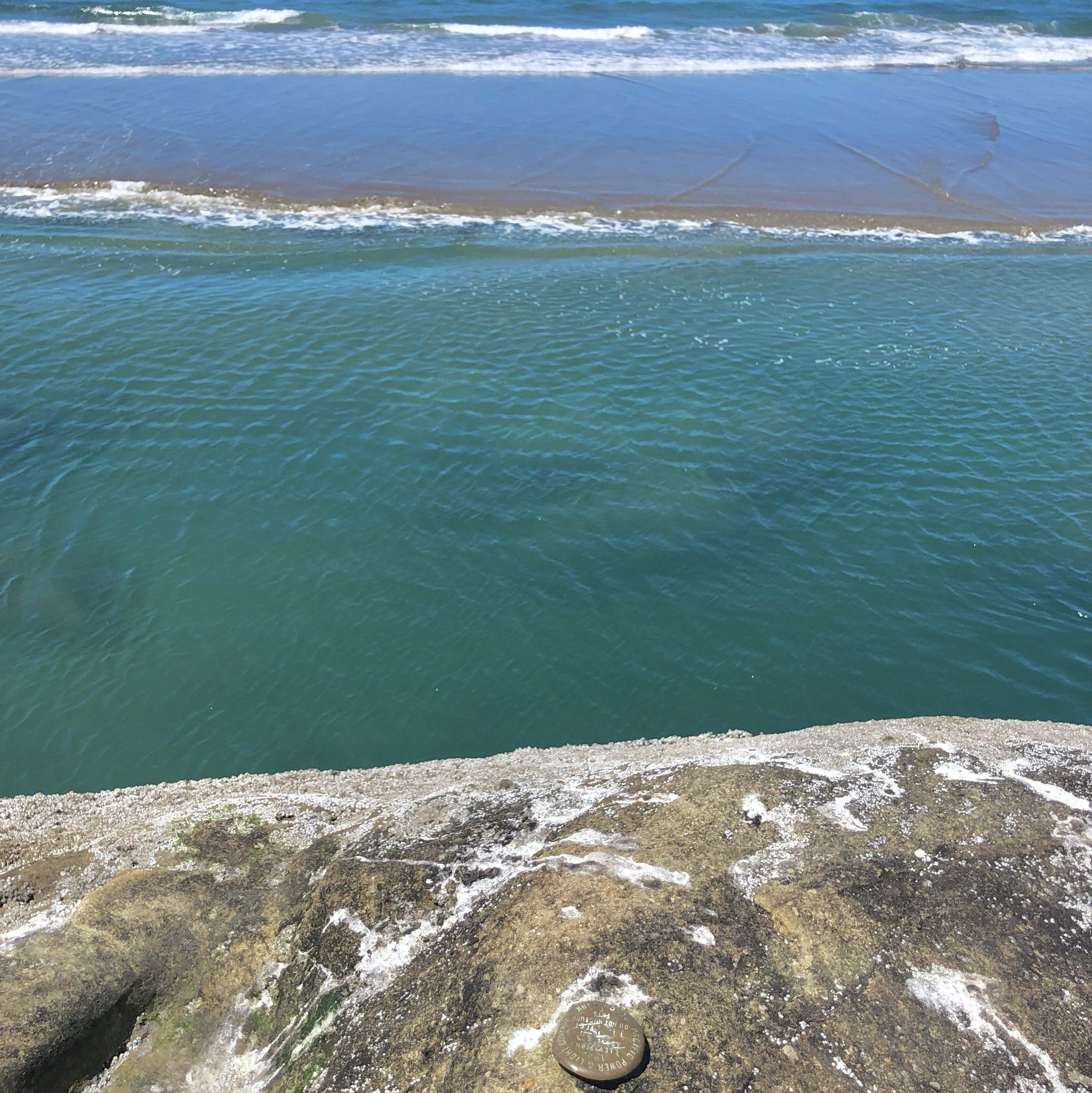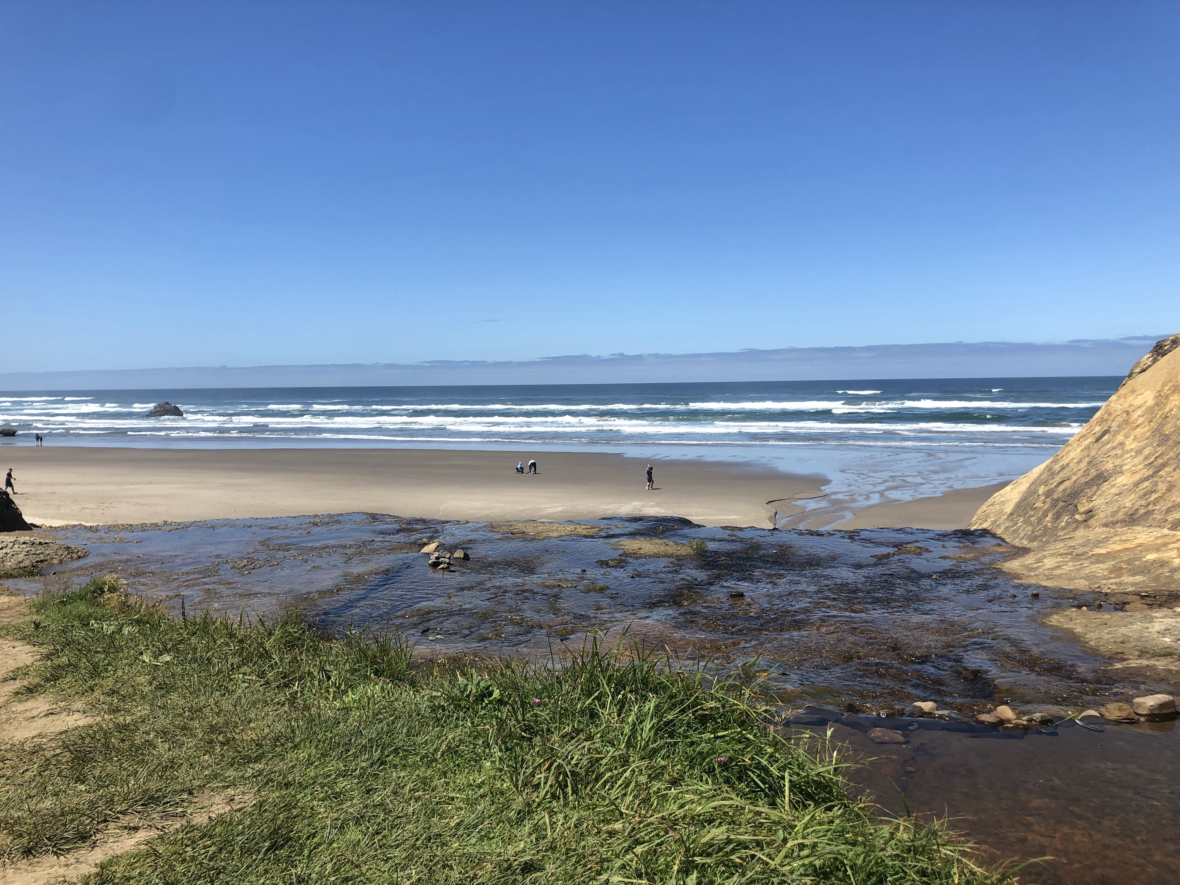 Google will take you directly to the parking lot… which is small and fills up quickly, so get there early or right as the tide is starting to go out. It does have a bathroom and you can be daring and park along the highway in spots without a no parking sign too. There is a nice walkway out onto the beach, but that last step off the stairs into the rocks before hitting sand is a very big step .