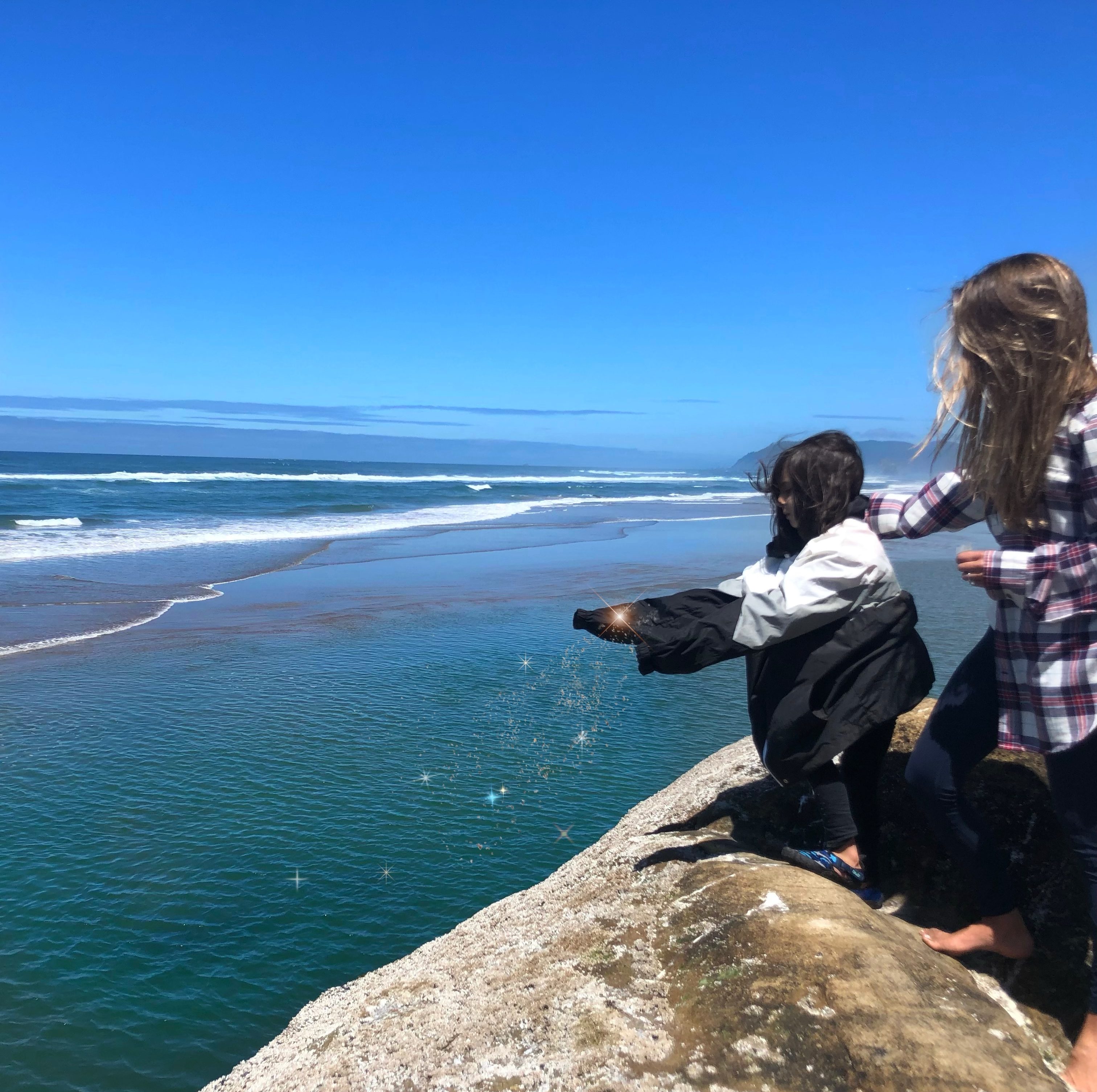 We spent the day exploring caves, looking for crabs, playing in the waterfall, making sand castles, burying each other in sand, and exploring above the waterfall. We spent the afternoon crying and hugging each other while we sprinkled some ashes for the first anniversary of his passing, on his birthday, on Father’s Day weekend. It was a heavy day, and it’s a heavy feeling, but his memory will live on.