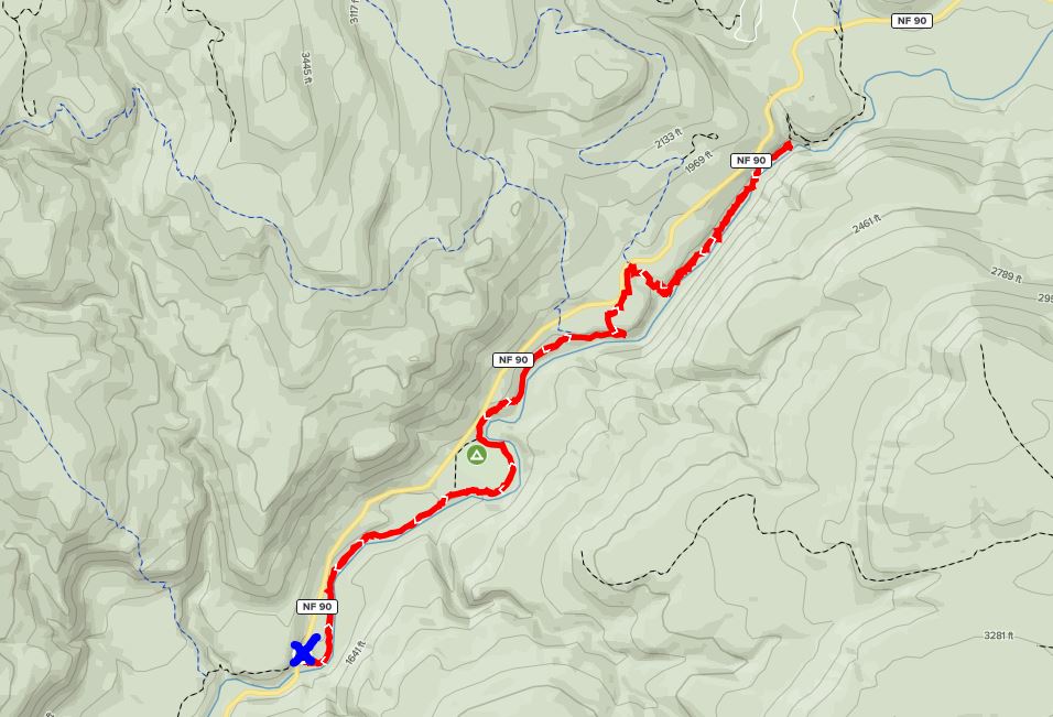 This trail has many options but you just want to visit the waterfalls and not take the entire Lewis River Trail #31, then I will go over those trails below by parking location. Images of Map Trails below are taken from AllTrails and the blue X highlights the different parking areas you can start from:
