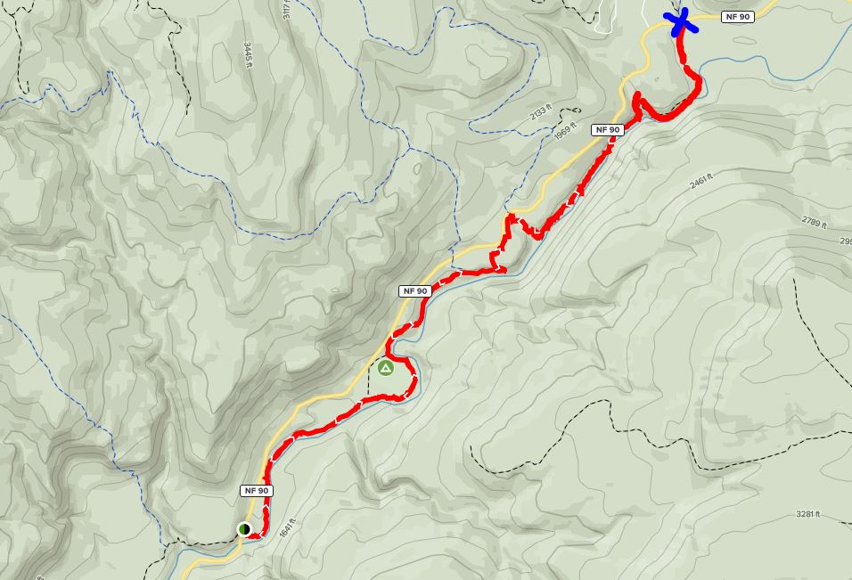 - turn around point is bottom of Upper Falls